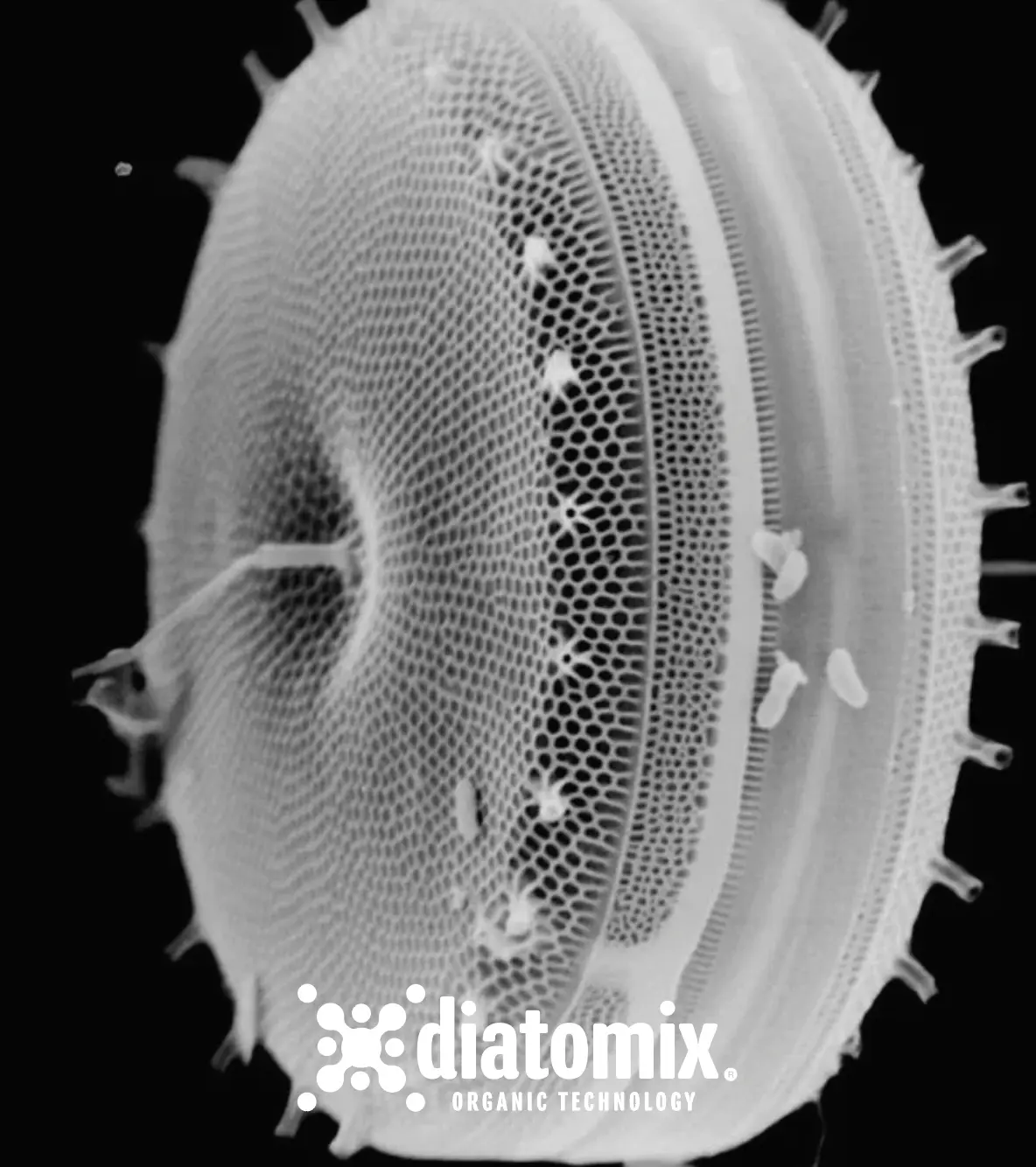 Las diatomeas que integran Diatomix provienen de un ambiente lacustre y se encuentran fosilizadas, lo que se puede apreciar al observarlas al microscopio.
